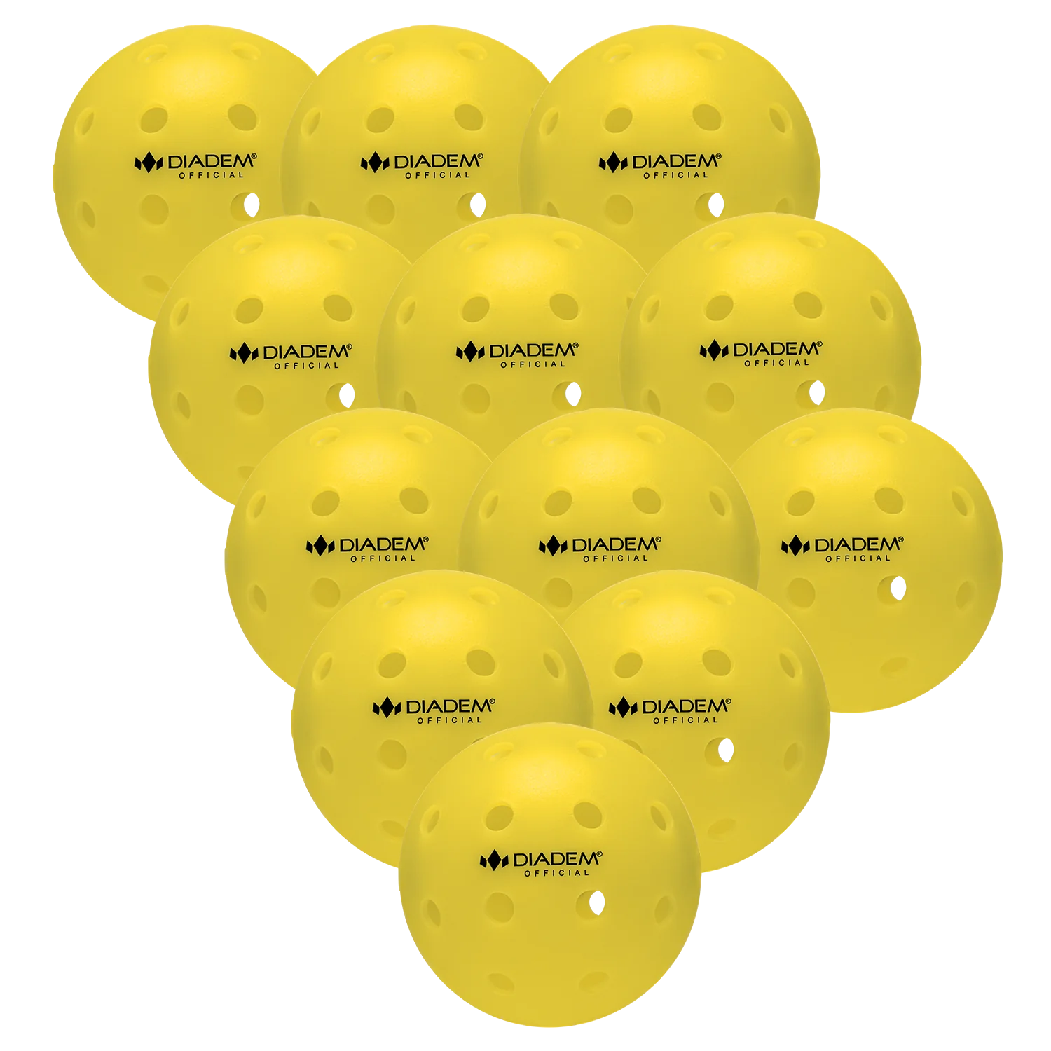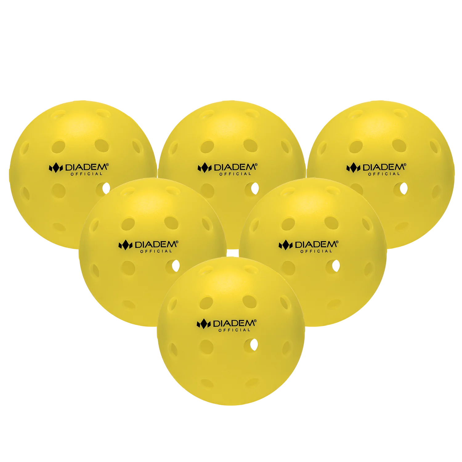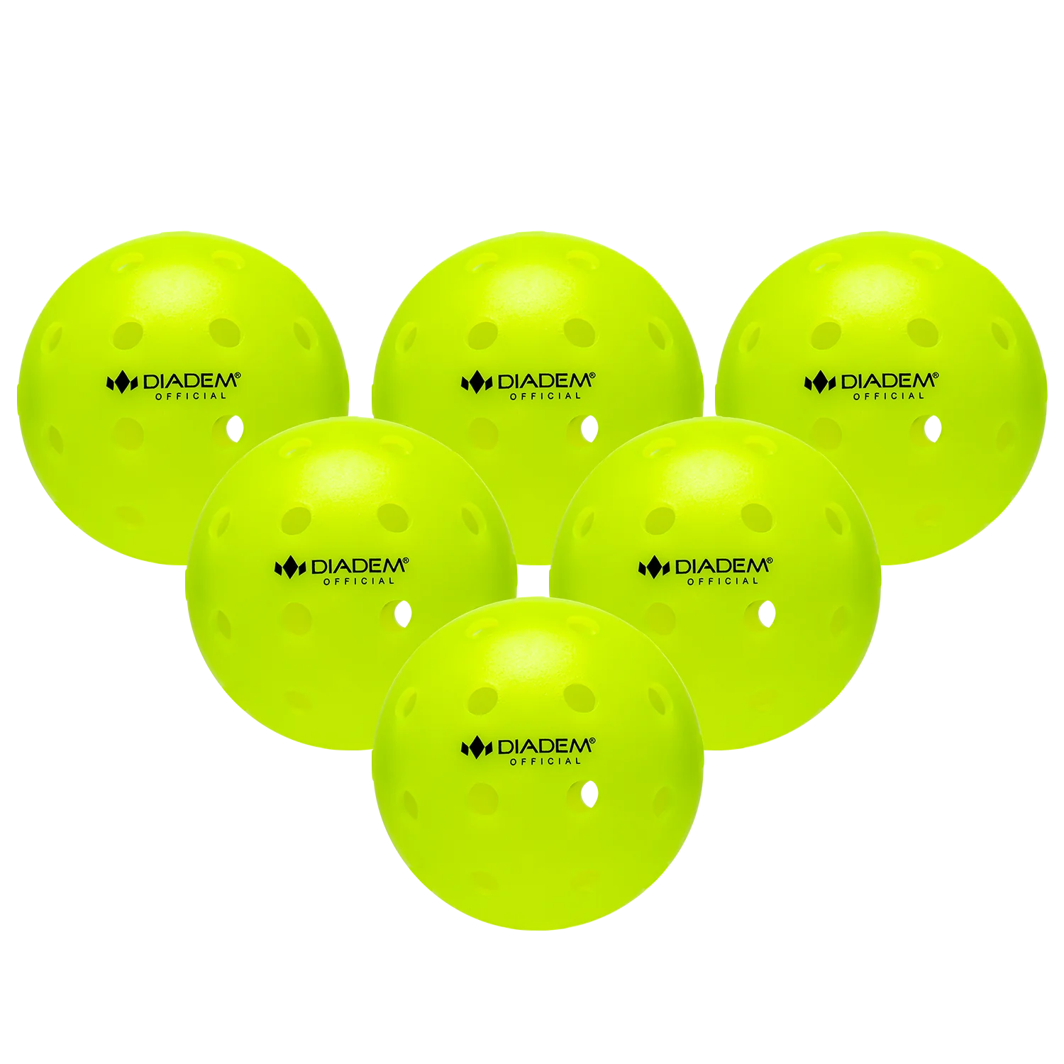 Descubre las Pelotas Oficiales de Pickleball Diadem, aprobadas por USAPA para torneos y diseñadas con construcción sin costuras de molde único. Su material plástico ultra resistente y sus 40 agujeros de igual tamaño las hacen ideales para juego al aire libre, ofreciendo velocidad superior y máxima durabilidad incluso en temperaturas de hasta 7°C (45°F).