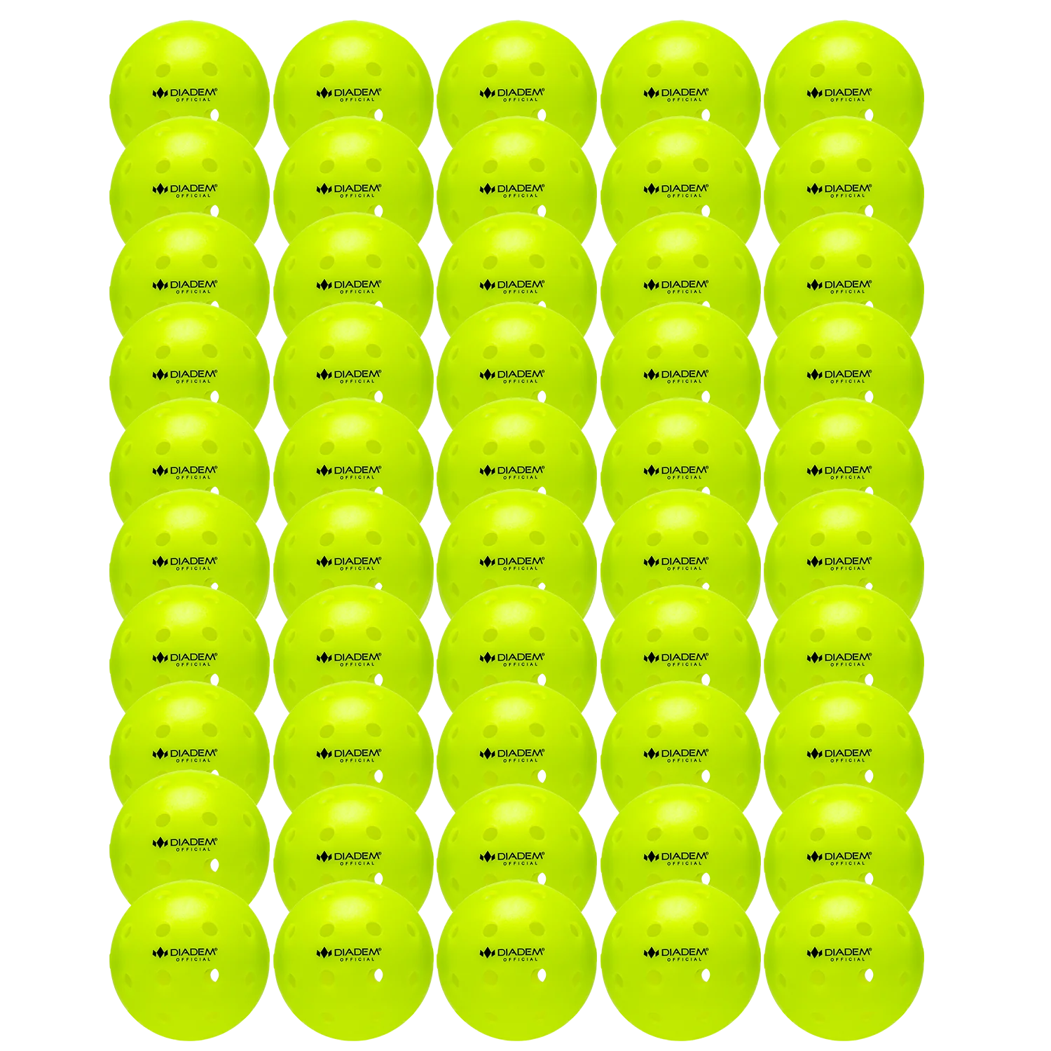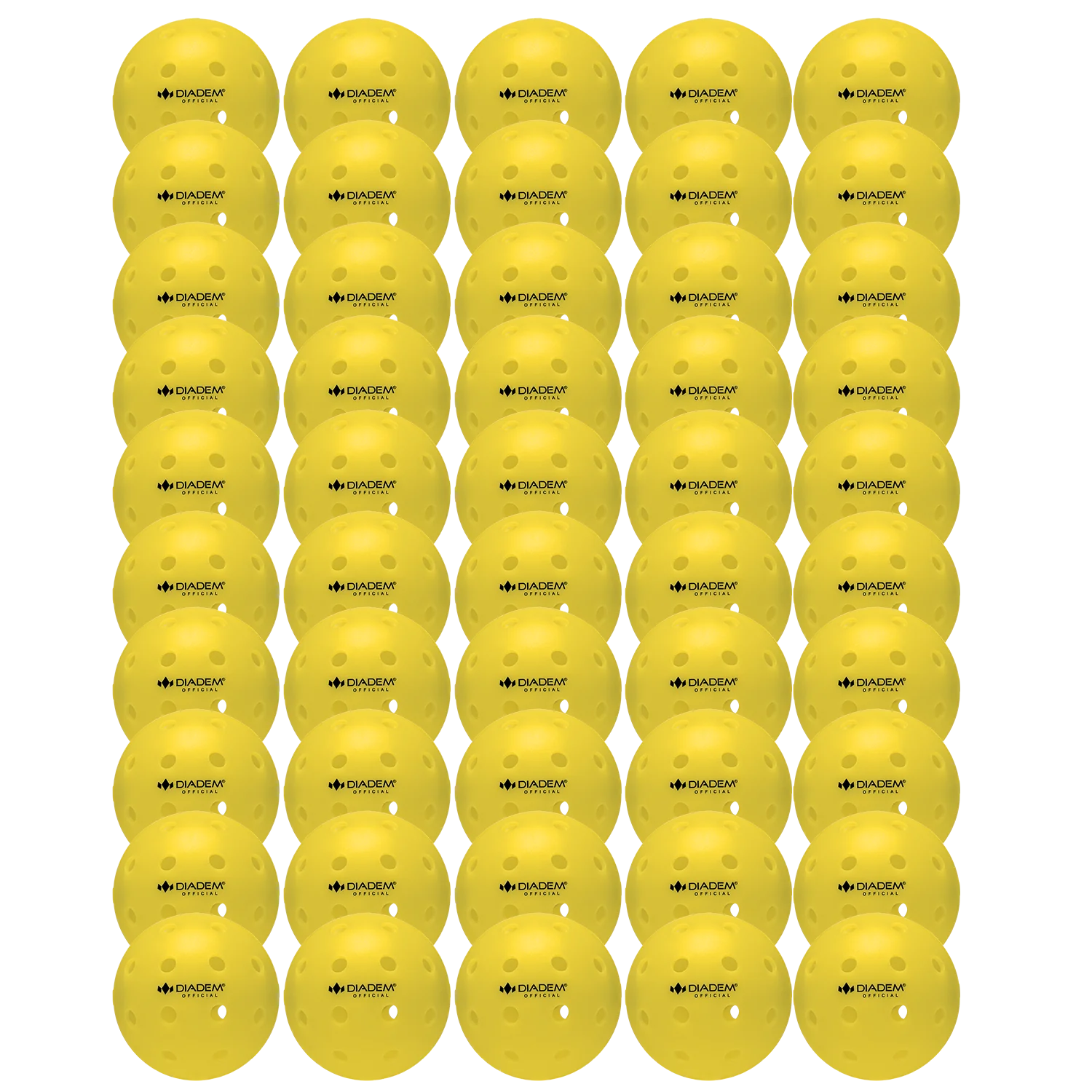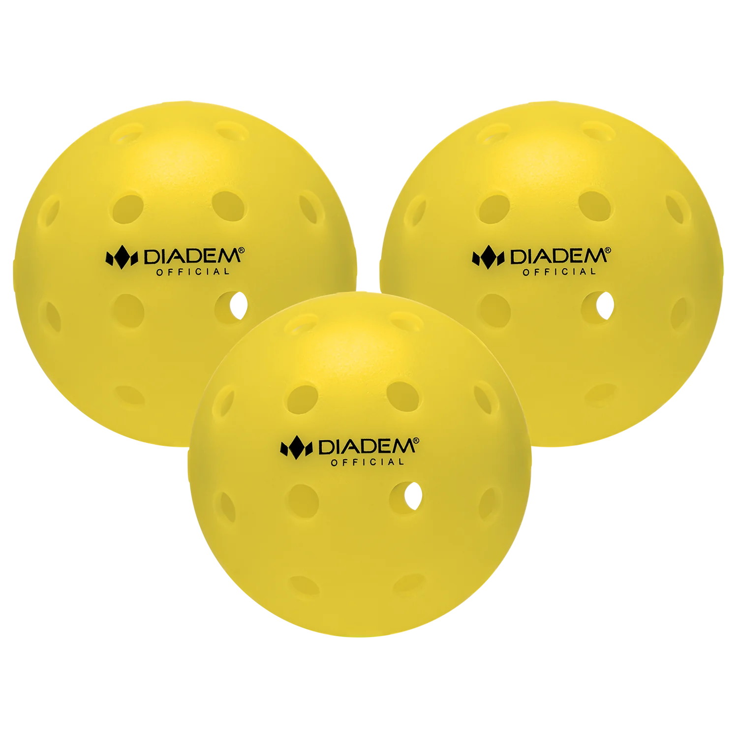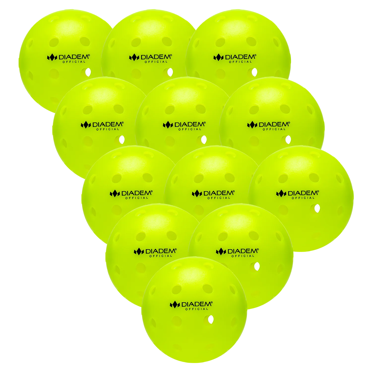 Descubre las Pelotas Oficiales de Pickleball Diadem, aprobadas por USAPA para torneos y diseñadas con construcción sin costuras de molde único. Su material plástico ultra resistente y sus 40 agujeros de igual tamaño las hacen ideales para juego al aire libre, ofreciendo velocidad superior y máxima durabilidad incluso en temperaturas de hasta 7°C (45°F).